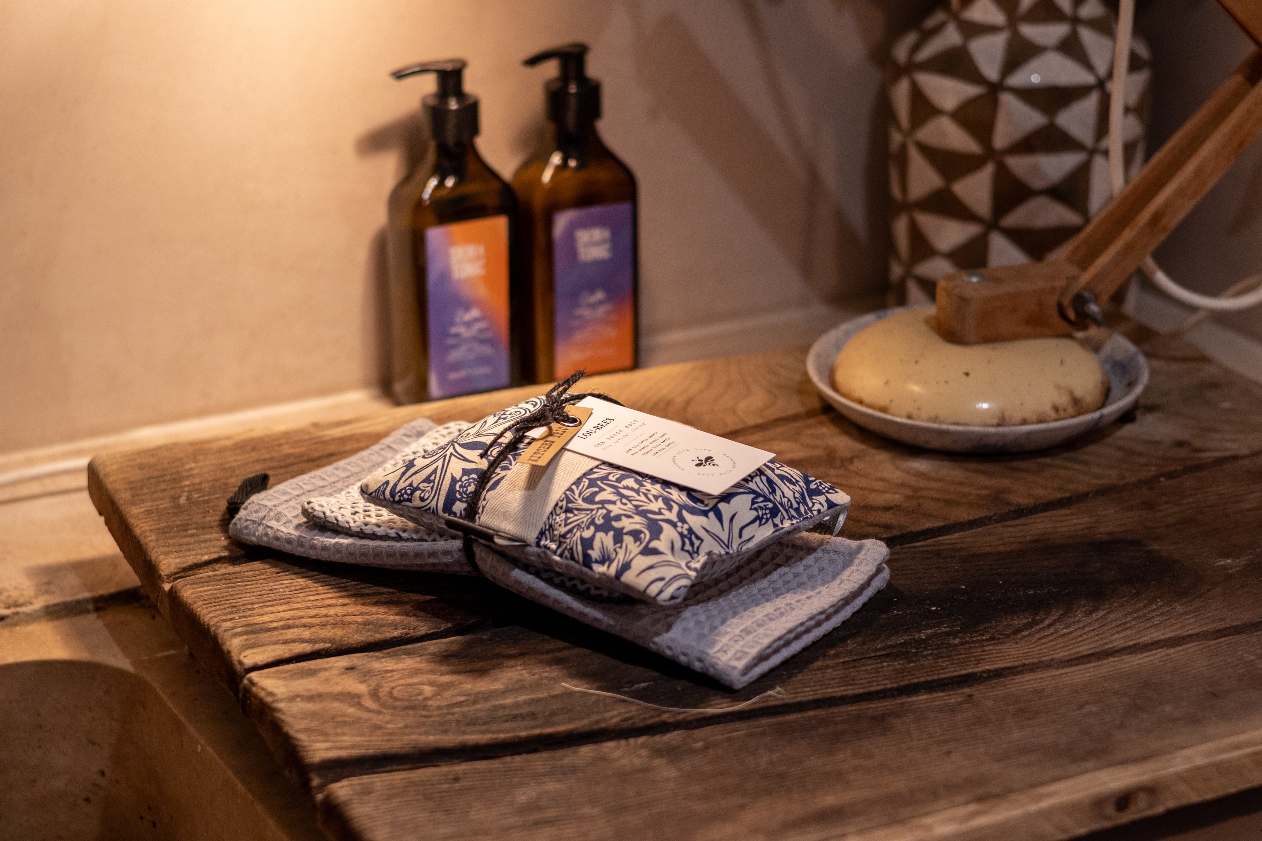 Perfectly packaged for travel in a handmade fabric pouch, this trio adds both charm and convenience, making self-care easy wherever you go.